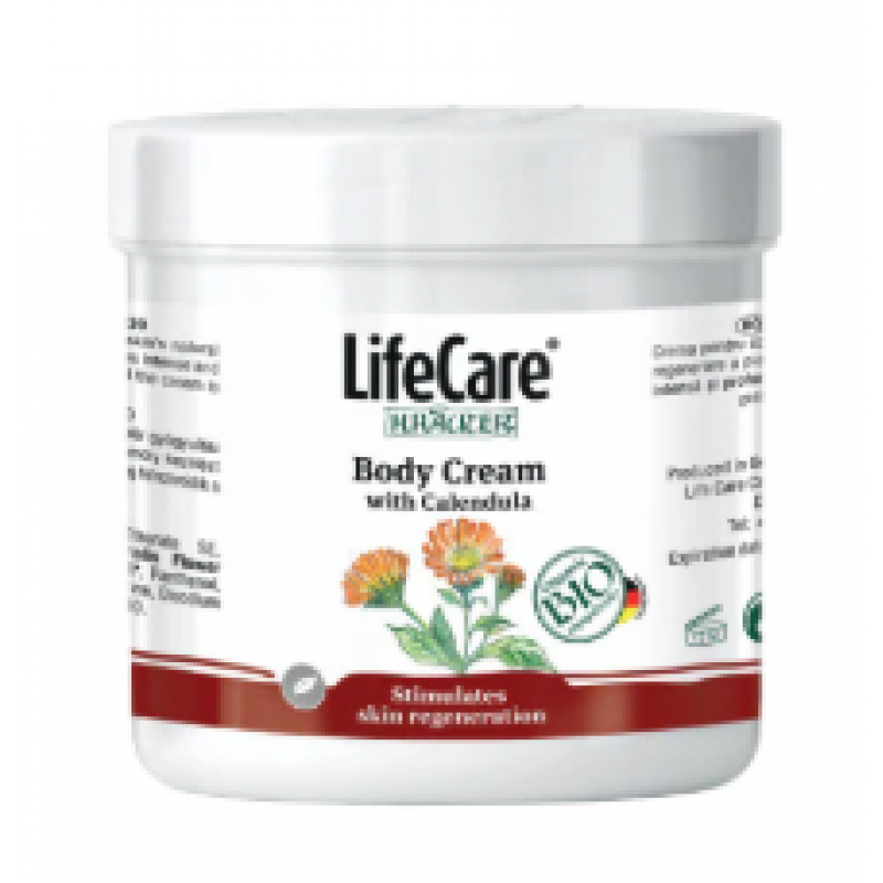 Crema de corp, cu galbenele BIO, Life Care® are proprietati de calmare si regenerare a pielii. Ingredientele BIO, precum ulei de avocado si ulei de jojoba, provenite din medii controlate biologic, calmeaza si hidrateaza pielea si imbunatatesc procesul de cicatrizare a pielii. Are un efect emolient si ajuta pielea sa isi recapete supletea natural, conferindu-i un aspect catifelat si sanatos. O crema de corp care nu ar trebui sa lipseasca din casa ta.