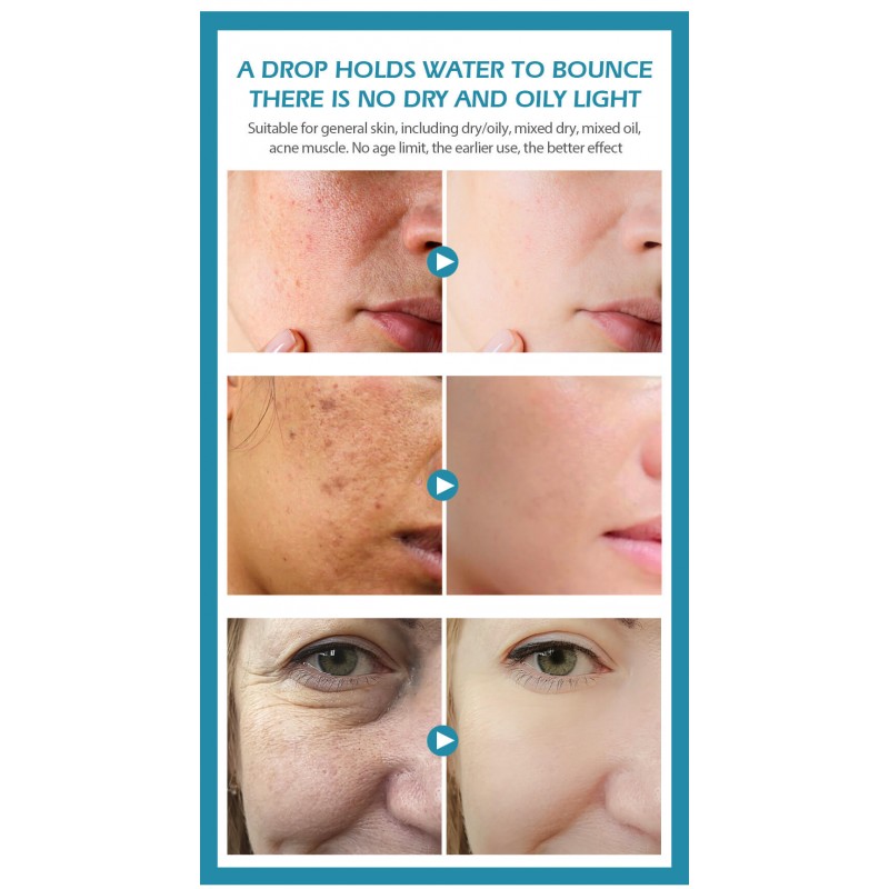 Serul profesional cu acid hialuronic va crește nivelul de hidratare al tenului, reținând apă, iar astfel spațiile goale dintre colagen și fibrele de elastină se vor umple constant, iar pielea ta va arăta mult mai odihnită și va radia de frumusețe.